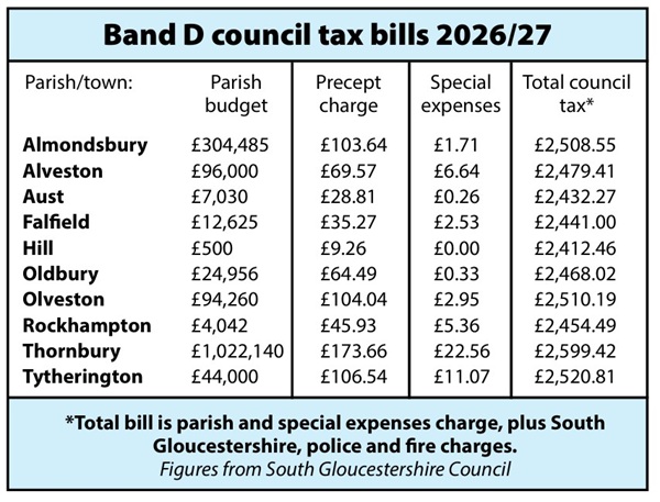 It is the first time the bill for Thornbury households in the median tax band has passed £2,500 – a threshold also crossed this year in Almondsbury, Olveston and Tytherington, while Alveston and Oldbury parishes remain below.